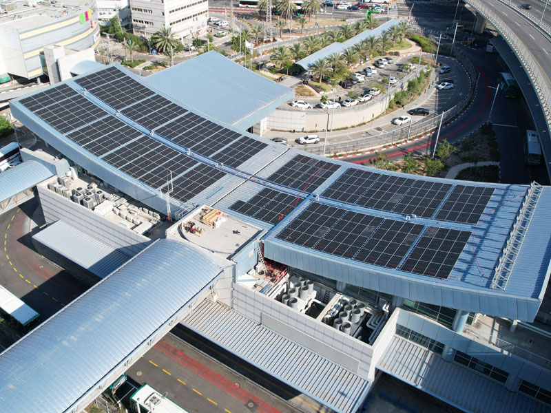 ד.ס. הרכבות הקימו בתחנת "מרכזית המפרץ" שליד הצ'ק פוסט בחיפה - מערך של קונסטרוקציה מרחבית ומעליו גגות אלומיניום בשטח כולל של 5,000 מ"ר. מעל לגגות הותקנו פנלים סולאריים.