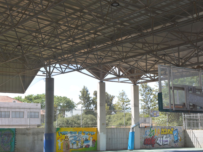 קונסטרוקציה מרחבית נושאת גג במגרש בית ספר "אירוס" בנס ציונה