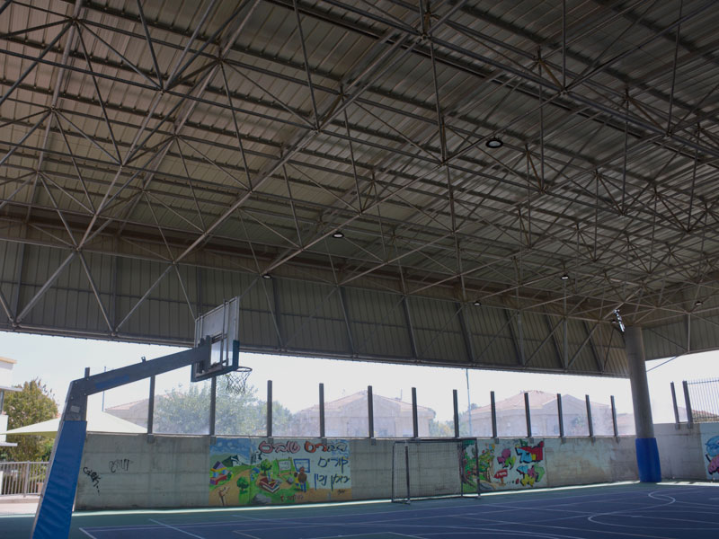 קונסטרוקציה מרחבית במפתח של 12X34 מטר לקירוי מגרש משחקים בבית הספר "אירוס" בנס ציונה.