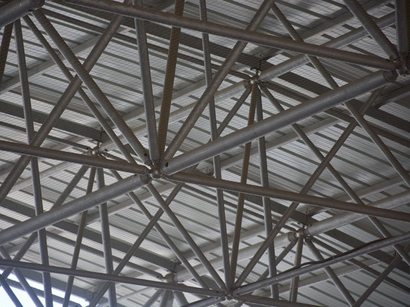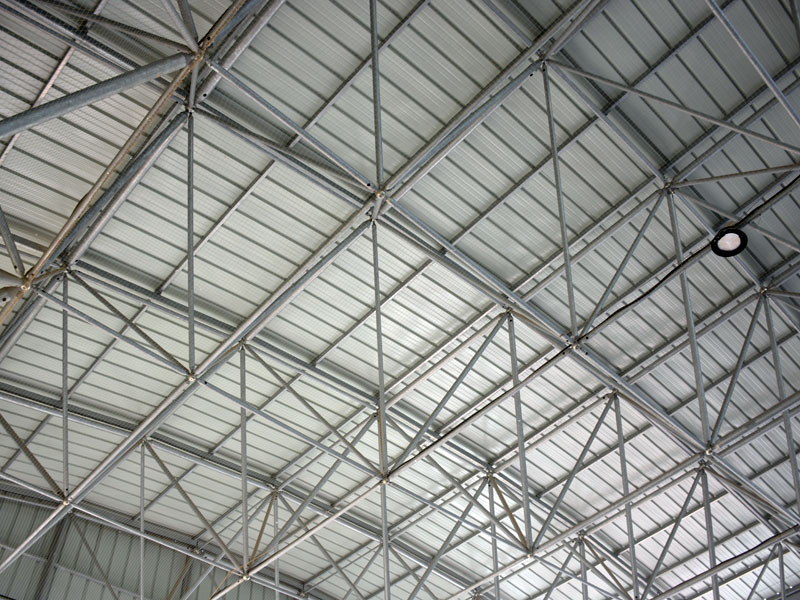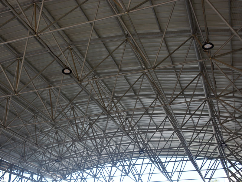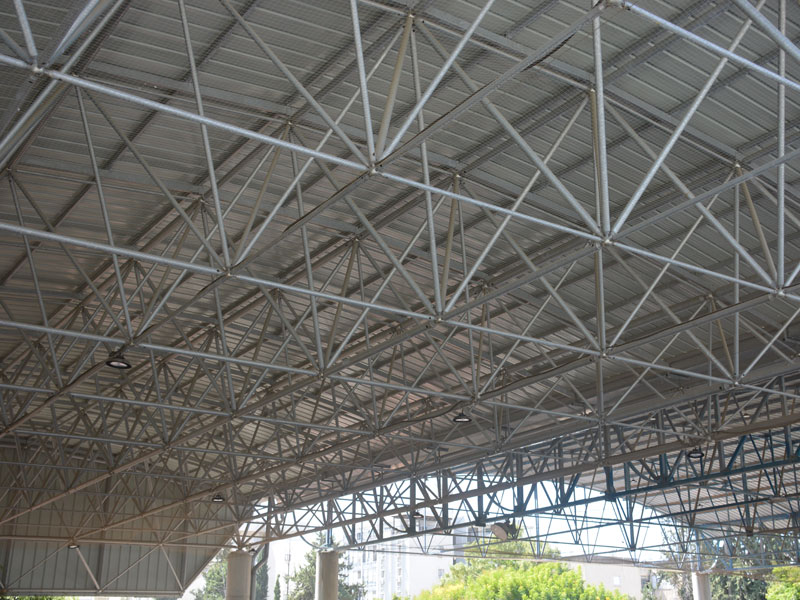קונסטרוקציה מרחבית במפתח של 12X34 מטר נושאת גג לקירוי מגרש משחקים בבית הספר "סביונים